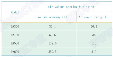 L/Min=Air volume(Air volume Opening+Air volume closing)×[(Air Supply(Kpa)+101.3)÷101.3]×Action cycle times/min