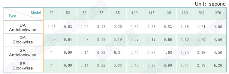Note: Above the parameter in 0.6 MPa pressure, has not matched the approximate time which the valve in the situation obtains.